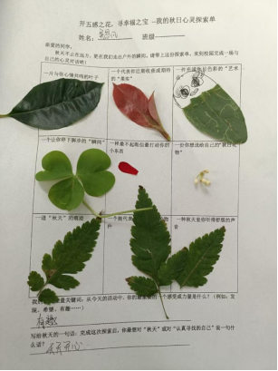 秋天不止在远方,更在我们走出户外的瞬间。大自然是人人都拥有的珍宝,也是治愈生活的一颗解药。11月21日在紧张的期中考结束后组织学生来到校园放松心情,鼓励他们用明亮的眼睛、机警的耳朵、灵敏的鼻子和嘴巴、聪明的大脑以及灵巧的双手来寻找到独属于自已的宝藏。在不违反规则和伤害他人的情况下能带回来就带回来,不能带回来的话请在格子里写一句话描述它或者画下来。
